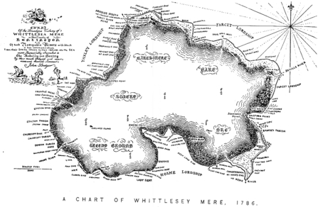 Cores at Engine Farm show that there is calcareous marl above the peat, this being the remains of the lake bed of Whittlesea Mere. The mere formed about two thousand years ago during the Iron Age when a rise in sea-level caused backing up of freshwater around the edges of fenland. Due to its mineral nature, the marl does not shrink as much as the peat when dried, so this part of Whittlesea Mere is now higher than the surrounding peat. Other studies have recorded smaller areas of it overlying the peat at Rymes Reedbed, the signature of a much older lake, Trundle Mere.