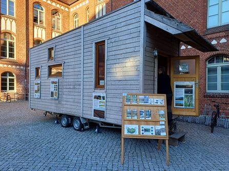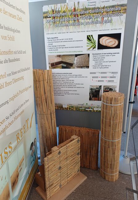 Speaking of the tiny house, I was lucky enough to meet with Torsten Galke, our builder from Moore and More. We visited his workshop to see our tiny-house under construction, as well as more products under development. It was a fascinating evening where we explored in detail the challenges and opportunities in taking raw materials and turning them into a living example of products at work. Our tiny-house includes a range of materials, all of which could be grown on wet farms in future. This includes alder plywood and timber, particle boards and insulation from Typha, and sedges and reeds as acoustic baffles (and design features!).