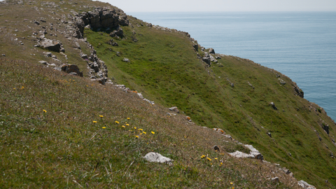 Famous for its floristic richness (there can be over 40 species per square metre of turf) and its rare and beautiful butterflies, this habitat is mostly found on the low chalk or hard limestone hills of southern England and along the wilder coastal cliffs and headlands of limestone country in the west of England and in Wales. However, the largest area of chalk grassland in Europe is found on the flat plateau of Salisbury Plain, while in Breckland the dry, winter-cold continental climate has allowed vegetation similar to that found in eastern Europe to develop. Traditionally sheep grazed, the typically short and open turf, well-drained conditions and sunny climate also make it suitable for invertebrates, and there are hundreds of rare species associated with the habitat. Scrub is typically present and includes lime-loving species such as guelder rose, dogwood and burnet rose, in addition to hawthorn and blackthorn, and occasionally juniper. The scrubby grassland margin tends to be less well-grazed, and supports species not found out on the open grassland, such as common calamint and the great green bush-cricket.