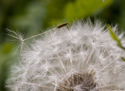 The seed 'clocks' of the common dandelion can carpet a grassland in fluffy, white pillows straight after the bright yellow, gaudy flowers have coloured it gold. Common dandelions grow in all kinds of grasslands from lawns to roadside verges, pastures to traditional meadows, and can be a weed.